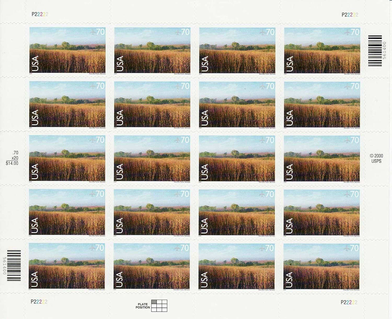 Nine Mile Prairie Sheet of Twenty 70 Cent Airmail Postage Stamps Scott C136