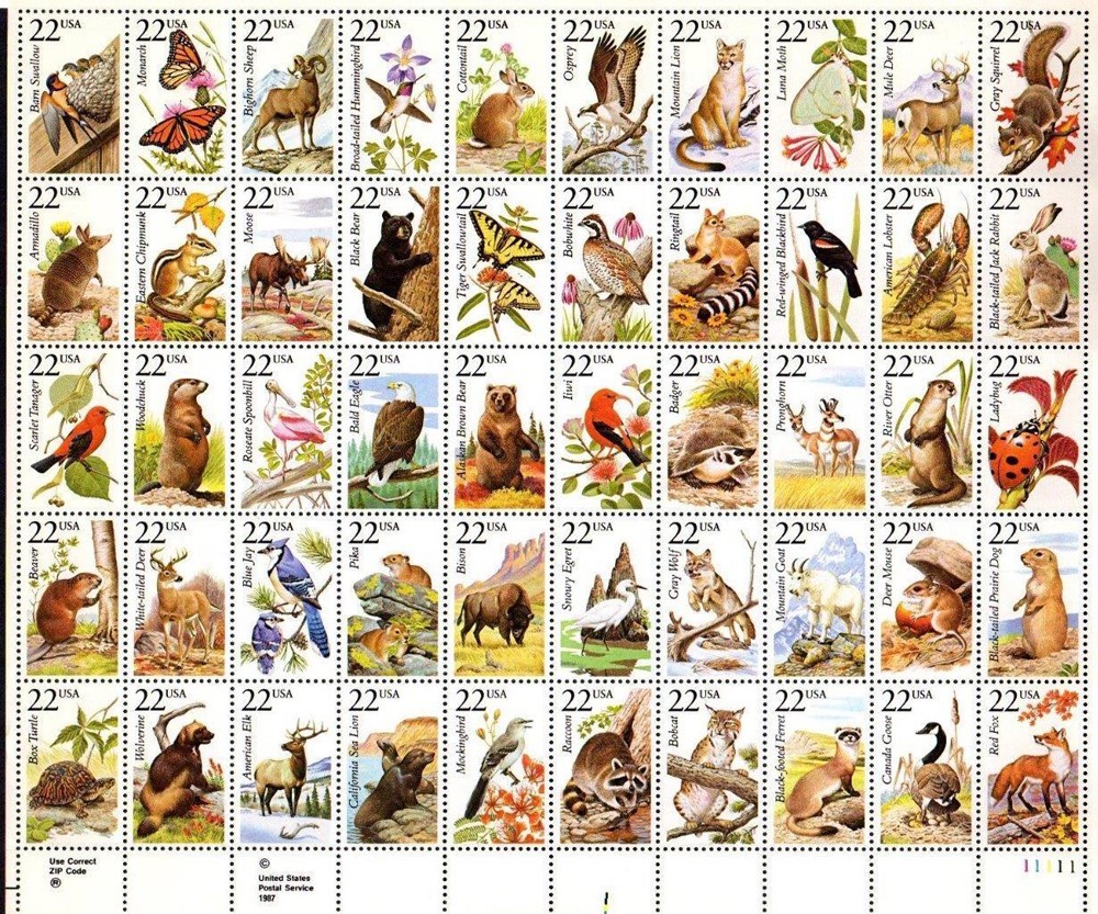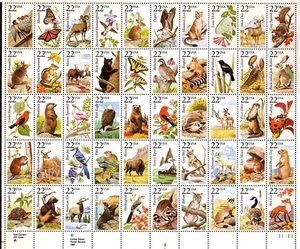 North American Wildlife Complete Sheet of Fifty 22¢ Stamps Scott 2286-35