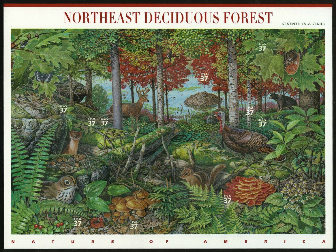 Northeast Deciduous Forest Nature Series Sheet of Ten 37 Cent Stamps Scott 3899
