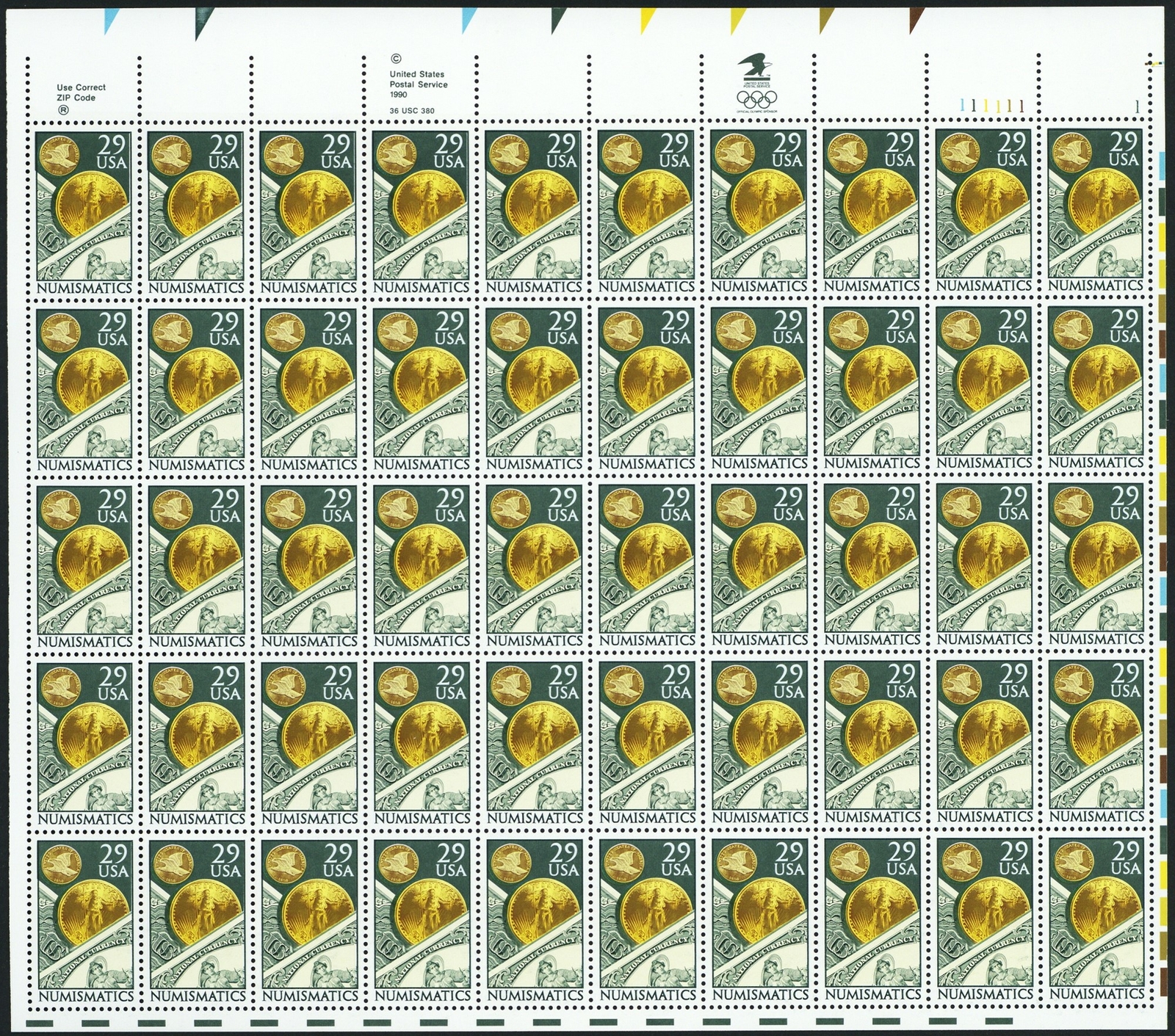 Numismatics Full Sheet of Fifty 29 Cents Postage Stamps Scott 2558