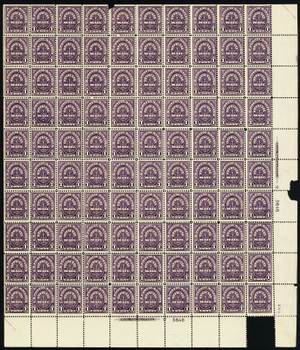 O124, Mint NH Sheet of 100 Official Stamps VERY RARE! CV $2250 - Stuart Katz