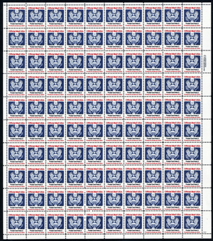 O138, MNH "D" (14¢) Full Sheet of 100 Stamps CV $507.50 - Stuart Katz