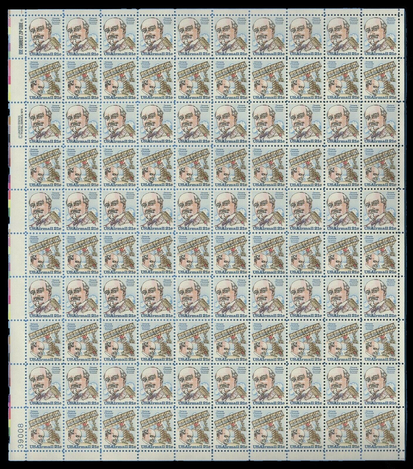 Octave Chanute Sheet of One Hundred 21 Cent Airmail Postage Stamps C93-94