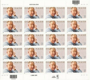 Ogden Nash Sheet of Twenty 37 Cent Postage Stamps Scott 3659