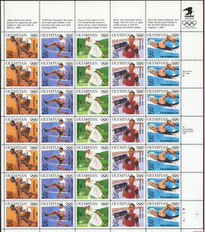 Olympians Mint Sheet of Thirty Five 25 Cent Postage Stamps Scott 2496-2500