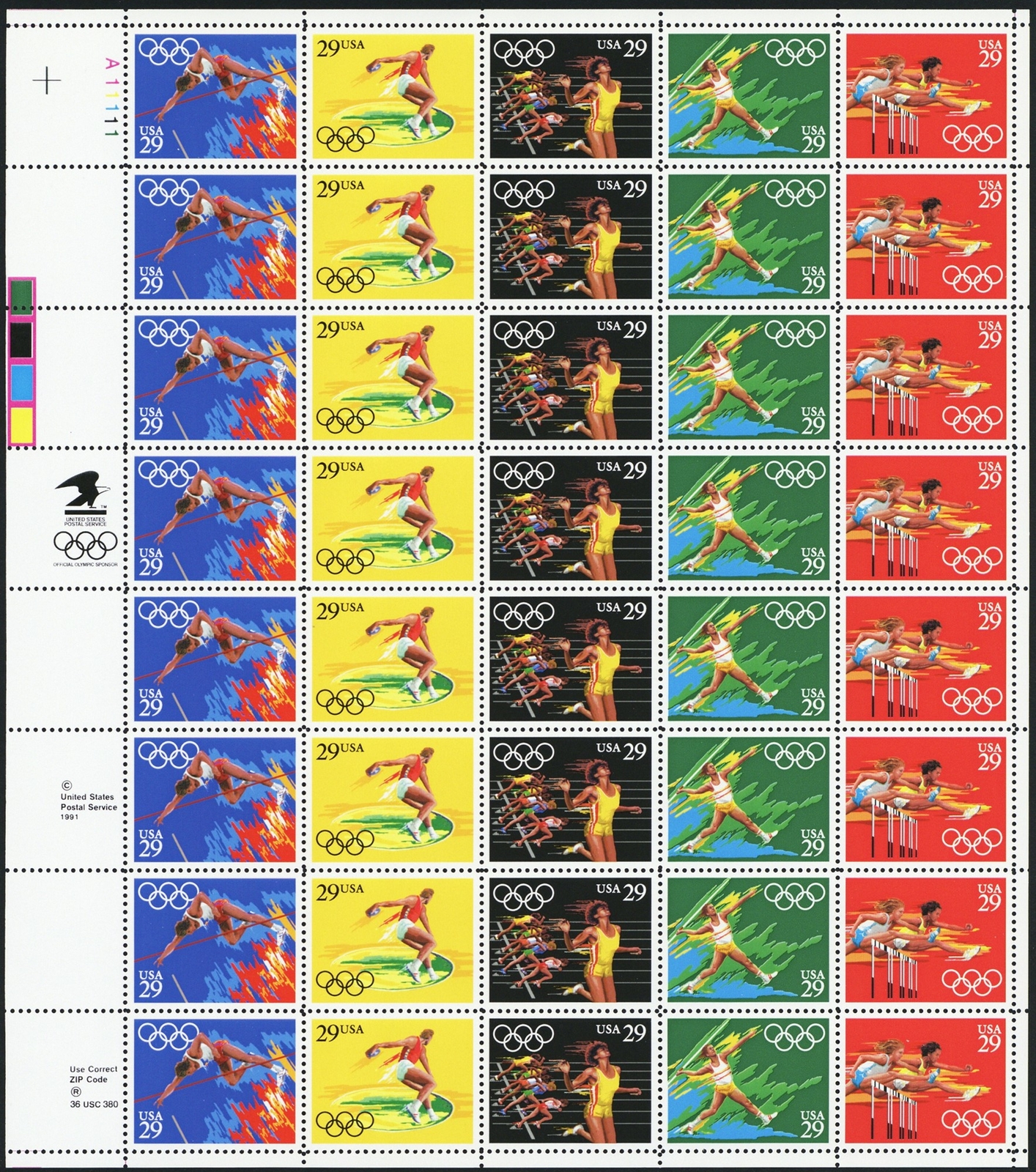 Olympics Track & Field Sheet of Forty 29 Cent Postage Stamps Scott 2553-57