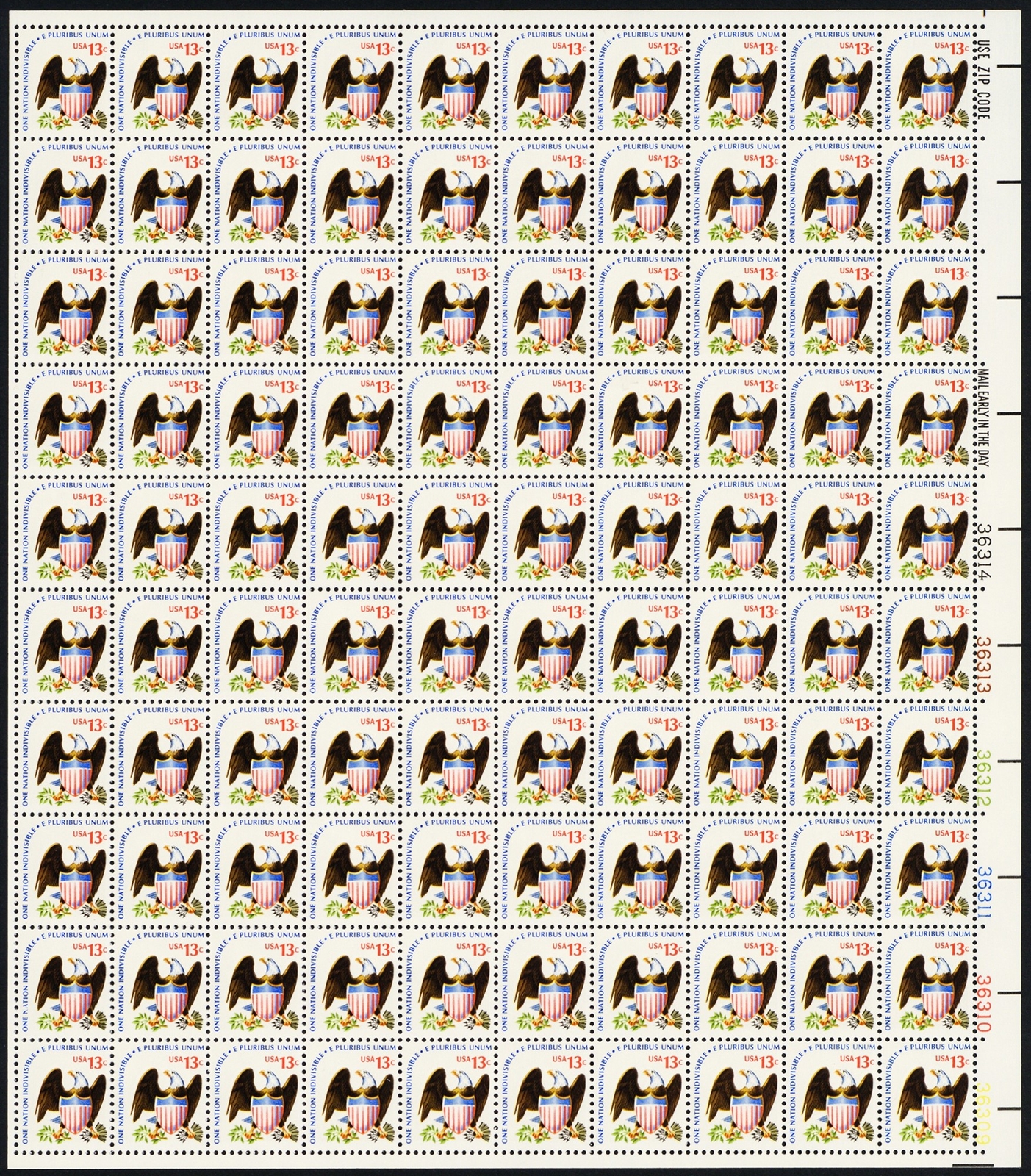 One Nation Indivisible Eagle Sheet of One Hundred 13 Cent Stamps Scott 1596