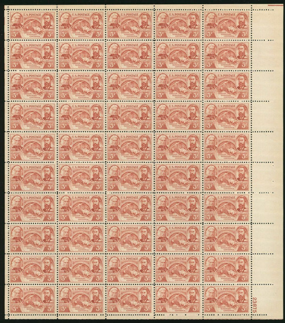 Oregon Territory Centennial Sheet of Fifty 3 Cent Postage Stamps Scott 964