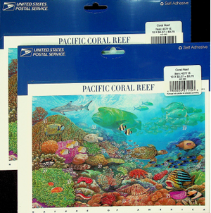 This is one pane of 20 X 0.37 cents US Postage First-Class Stamps - Pacific Coral Reef - Nature of America (Scott No. 3831 a-j) (Item No. 457115) issued by the U.S. Postal Service on 1/2/2004.  It is in Mint condition and factory sealed.