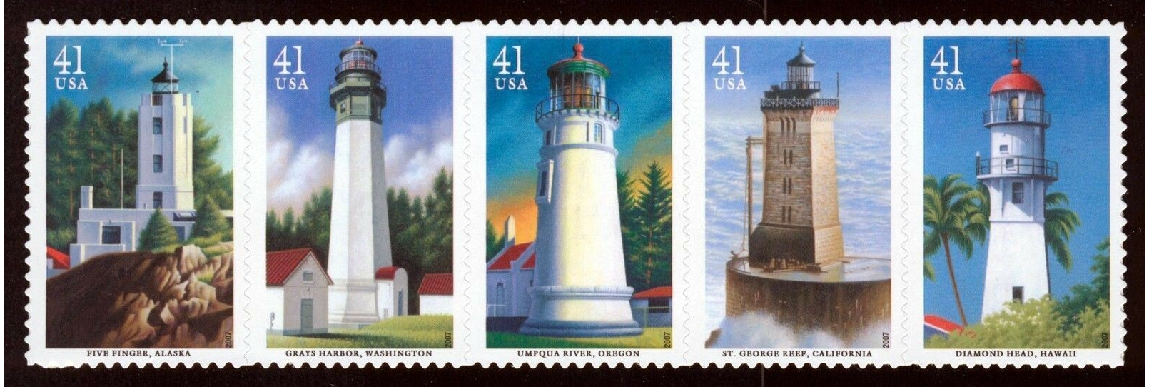 Pacific Lighthouses Sheet of Twenty 41 Cent Postage Stamps Scott 4146-4150