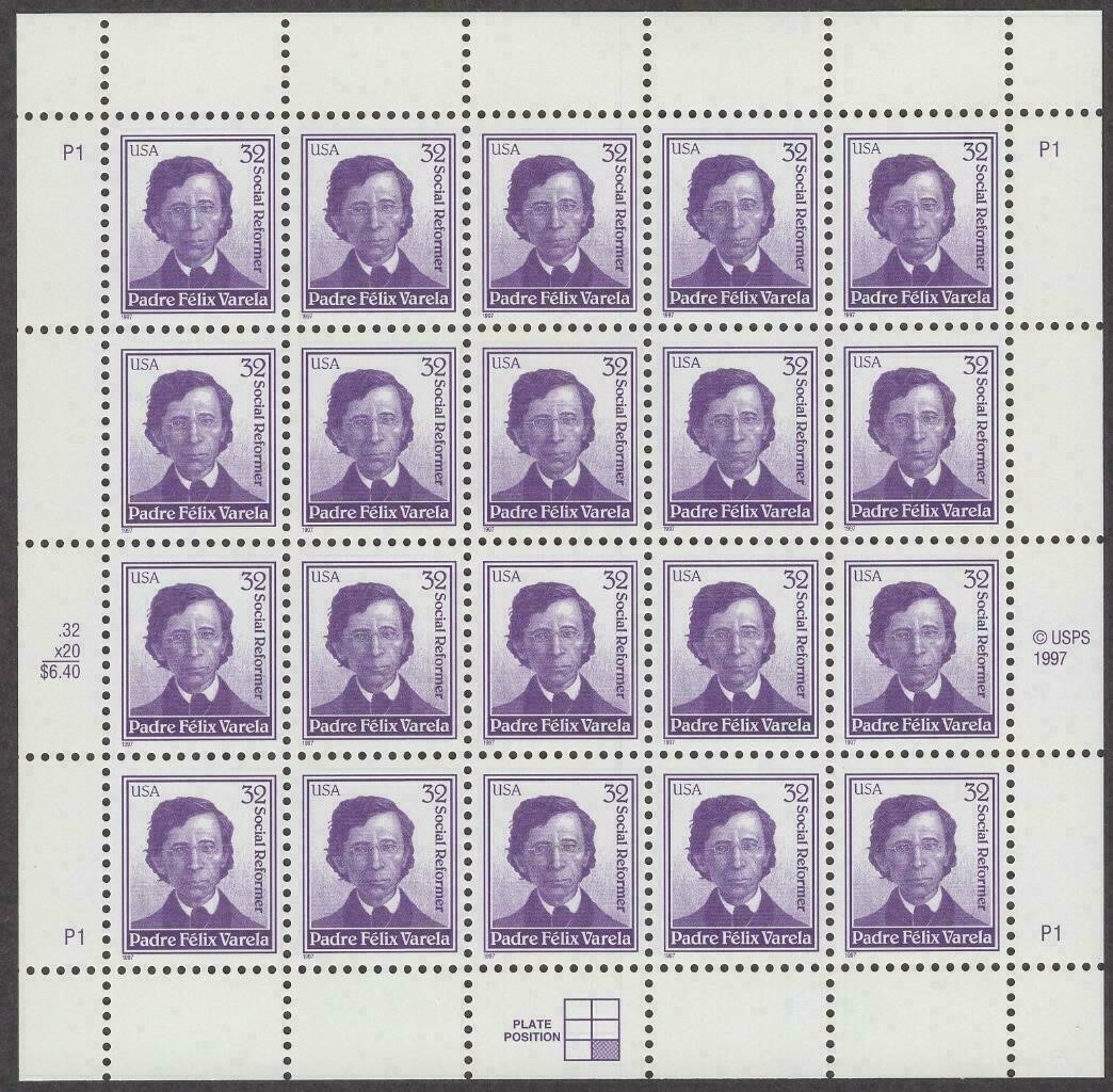 Padre Félix Varela Sheet of Twenty 32 Cent Postage Stamps Scott 3166