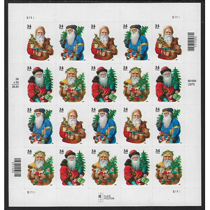 Santa Claus Sheet of Twenty 34 Cent Postage Stamps Scott 3537-40