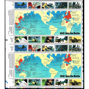 WWII 1942 Into the Battle Sheet of Twenty 29 Cent Postage Stamps Scott 2697