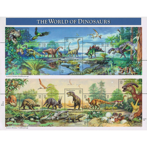 The World of Dinosaurs Sheet of Fifteen 32 Cent Postage Stamps Scott 3136