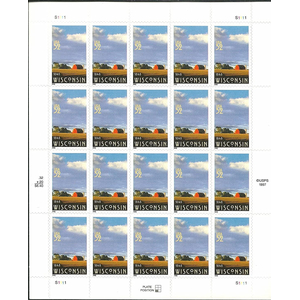 Wisconsin Statehood Sheet of Twenty 32 Cent Postage Stamps Scott 3206