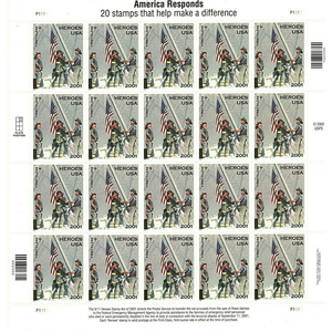 America Responds: 9/11 Heroes Sheet of Twenty 45 Cent Postage Stamps Scott B2