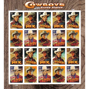 Cowboys of the Silver Screen Sheet Sheet of Twenty 44 Cent Stamps Scott 4446-49