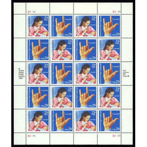 American Sign Language Sheet of Twenty 29 Cent Postage Stamps Scott 2783-84