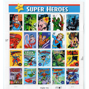 DC Comics Super Heroes Full Sheet of Twenty 39¢ Stamps Scott 4084 - Stuart Katz