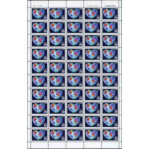 Heart-Shaped Globe Love Series 29 Cent Sheet of 50 Postage Stamps Scott 2535