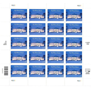 White House Sheet of Twenty 33 Cent Postage Stamps Scott 3445