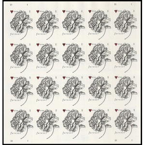 Contemporary Boutonniere Sheet of 20 Current Rate Wedding Stamps Scott 5457