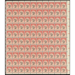 J79, Mint NH 1/2¢ Full Sheet of 100 Postage Due Stamps - Stuart Katz