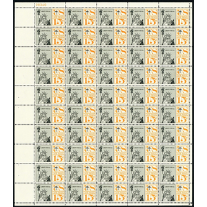 Statue of Liberty Full Sheet of Fifty 15 Cent Airmail Postage Stamps Scott C63