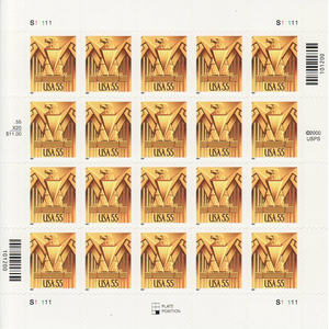 Art Deco Gold Eagle Sheet of Twenty 55 Cent Postage Stamps Scott 3471