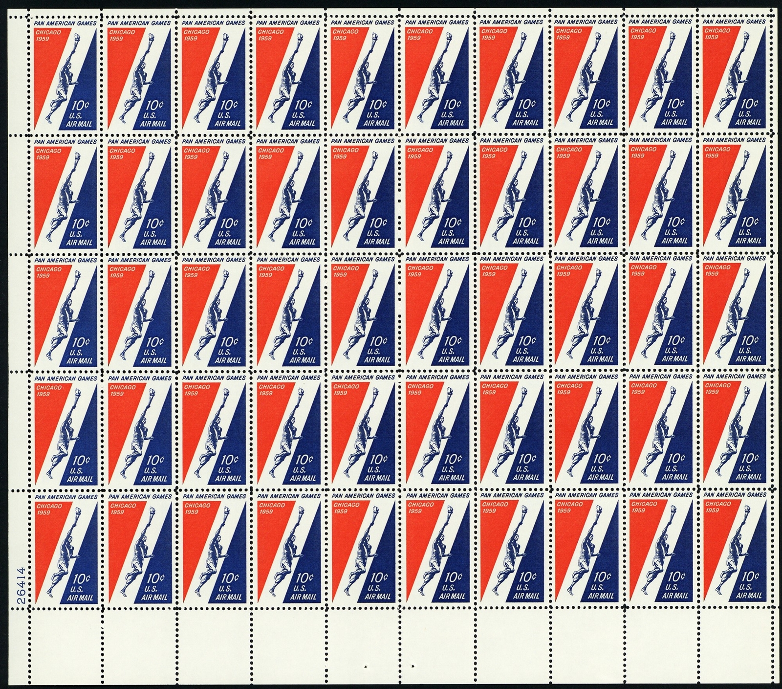 Pan Am Games Full Sheet of Fifty 10 Cent Airmail Postage Stamps Scott C56