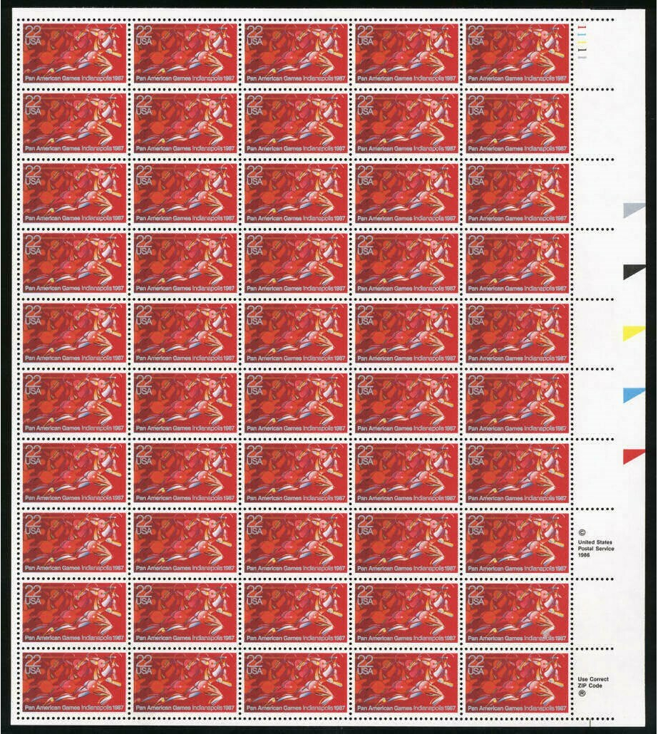 Pan American Games Sheet of Fifty 22 Cent Postage Stamps Scott 2247