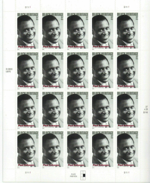 Paul Leroy Robeson Black Heritage Sheet of Twenty 37 Cent Stamps Scott 3834
