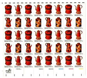 Pennsylvania Toleware Sheet of Forty 15 Cent Postage Stamps Scott 1775-78