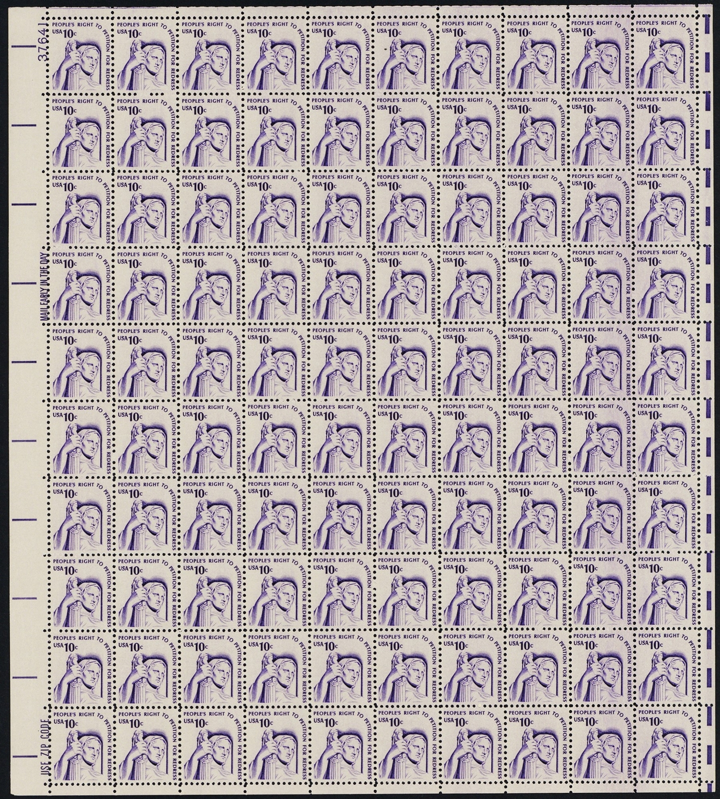 Peoples Rights Sheet of One Hundred 10 Cent Postage Stamps Scott 1592