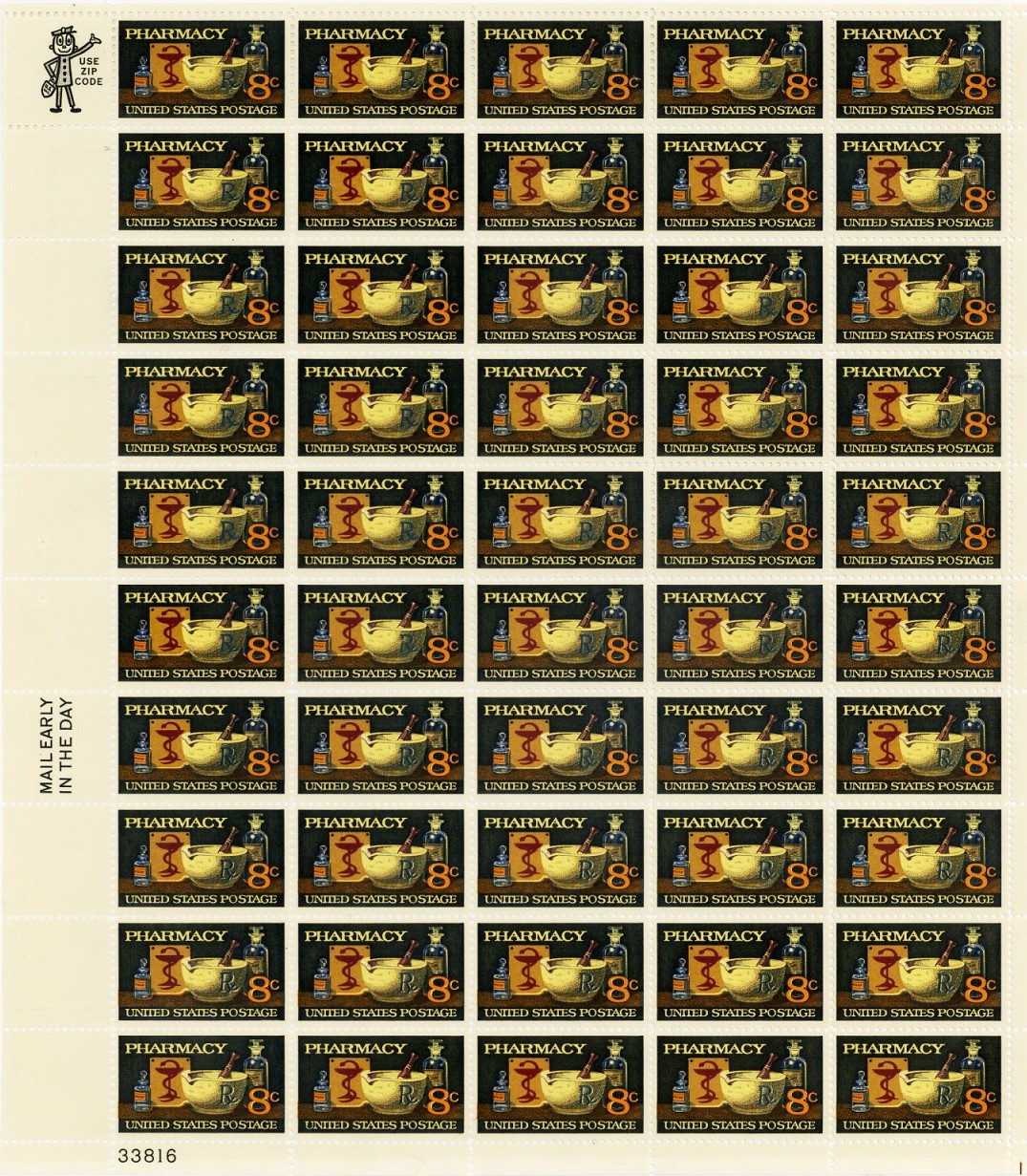 Pharmacy Sheet of Fifty 8 Cent Postage Stamps Scott 1473