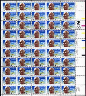 Piper and Piper Cub Full Sheet of Fifty 40 Cent Airmail Stamps Scott C129