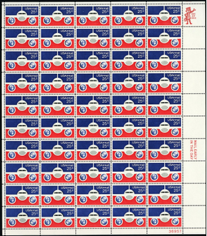 Plane And Globes Full Sheet of Fifty 25 Cent Postage Stamps Scott C89