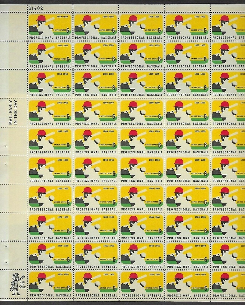 Professional Baseball Sheet of Fifty 6 Cent Postage Stamps Scott 1381