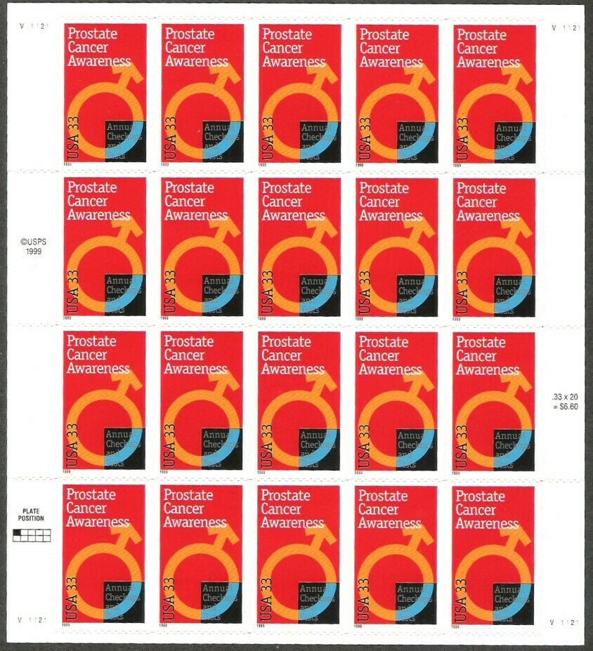 Prostate Cancer Awareness Sheet Sheet of Twenty 33 Cent Postage Stamps 3315