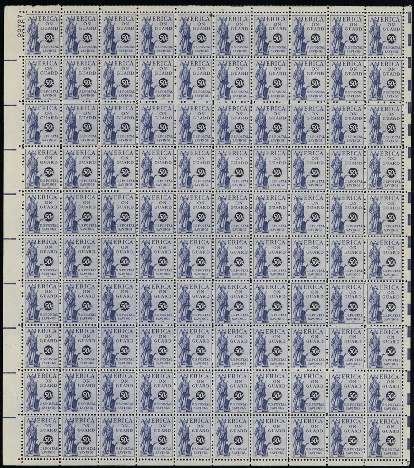 PS13, Mint NH 50¢ Postal Savings Complete Sheet of 100 Stamps * Stuart Katz