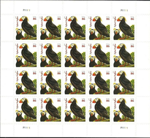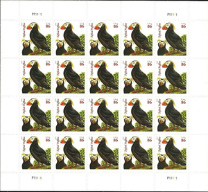 Puffins Complete Sheet of Twenty 86 Cent Postage Stamps Scott 4737