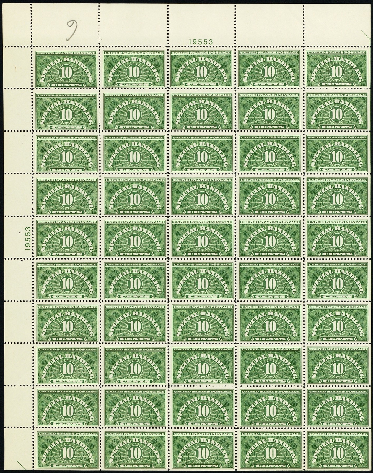 QE1a (wet) Mint NH Sheet of Fifty 10¢ Special Handling - Stuart Katz