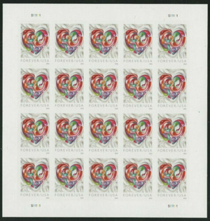 Quilled Paper Heart Wedding - Sheet of 20 Current Rate Stamps Scott 5036