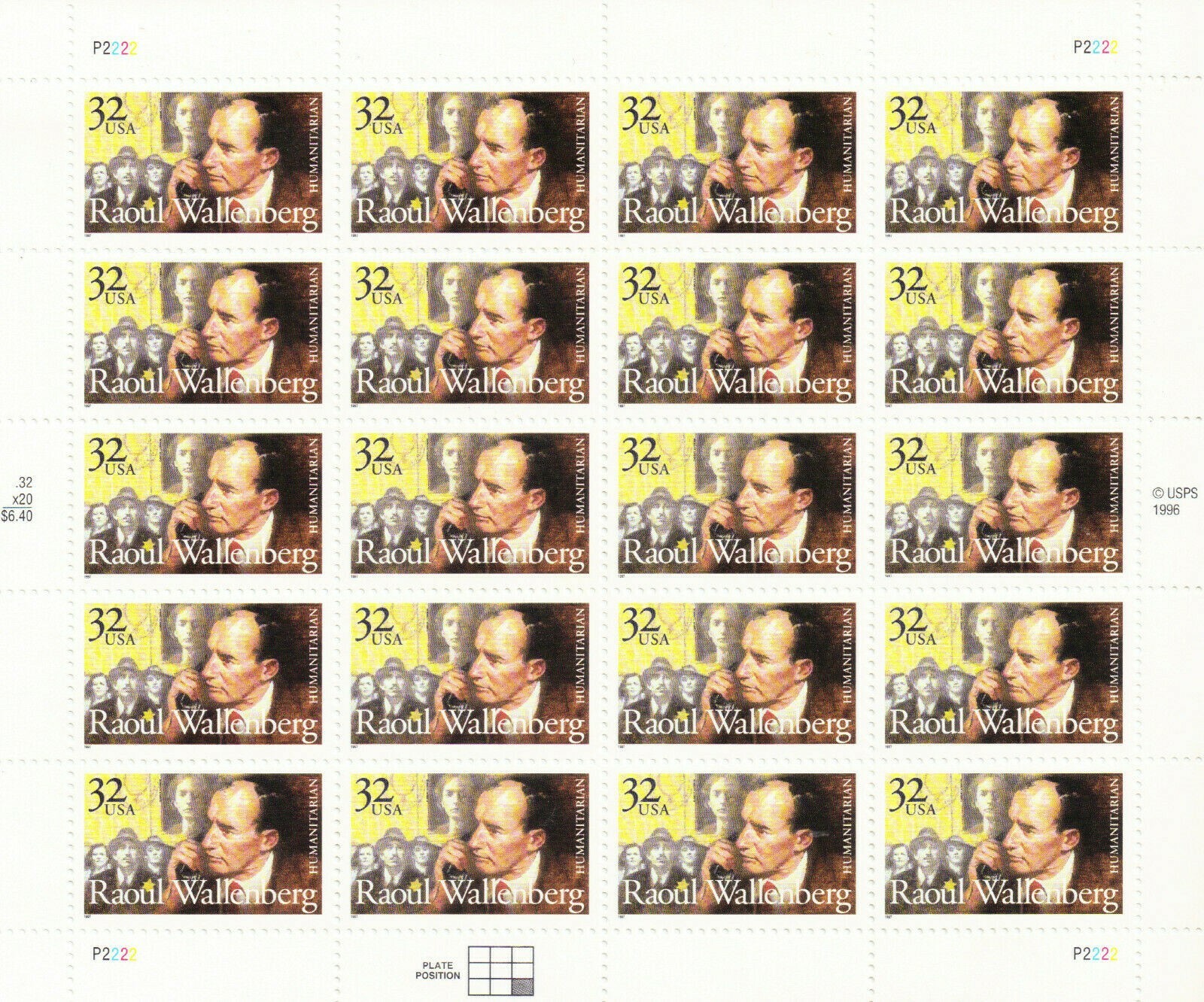 Raoul Wallenberg Sheet of Twenty 32 Cent Stamps Scott 3135