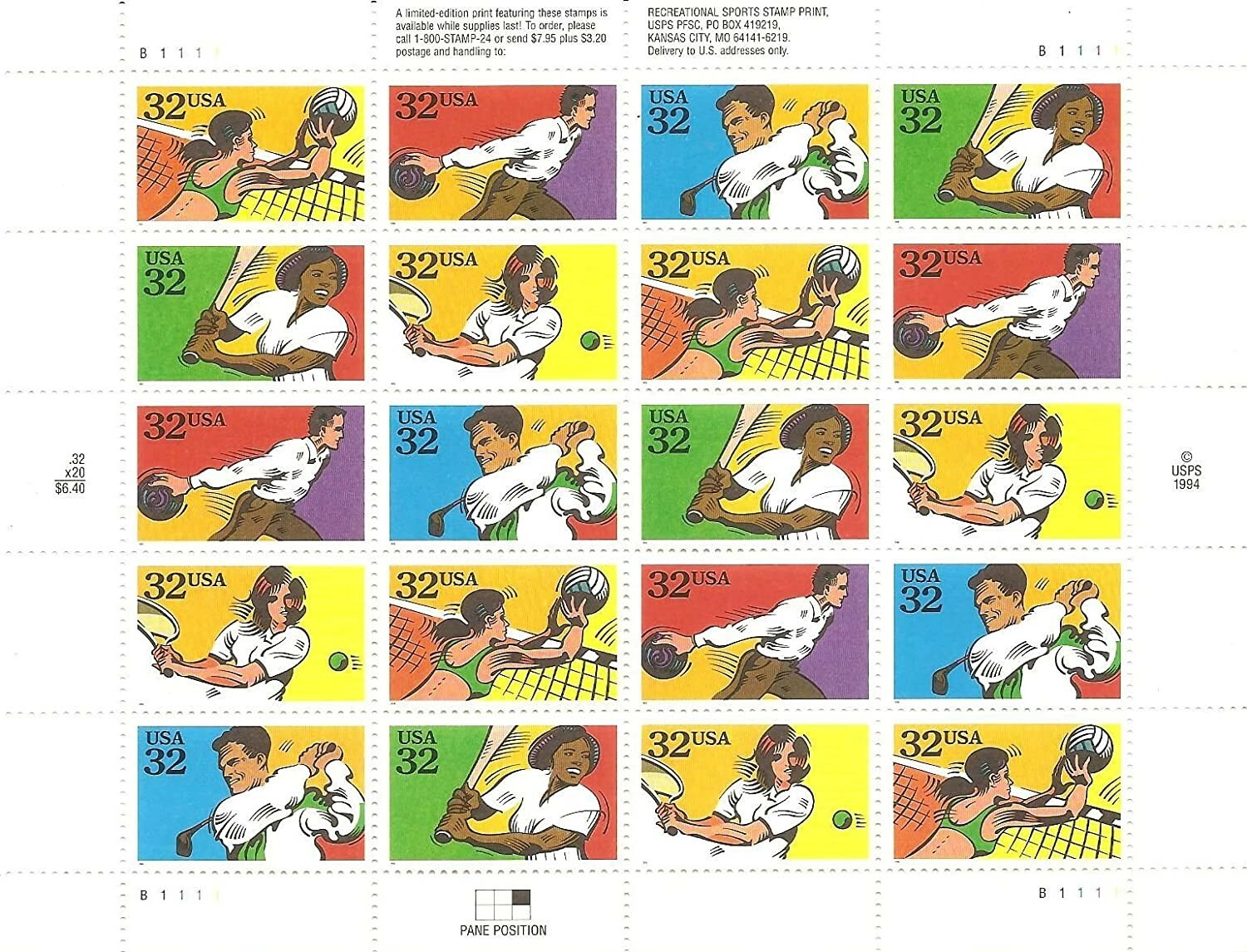 Recreational Sports Sheet of Twenty 32 Cent Postage Stamps Scott 2961-65