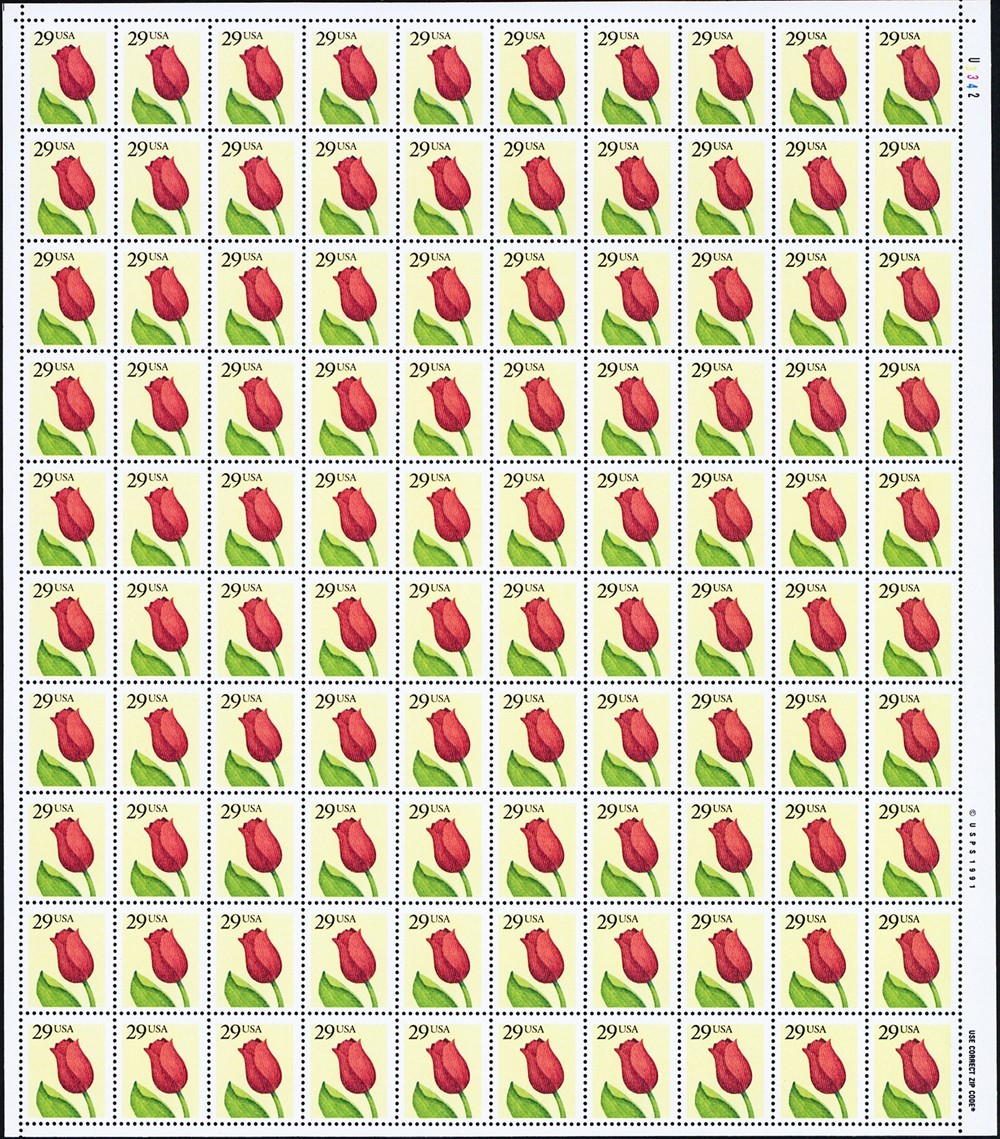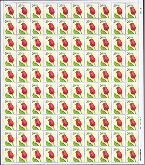 Red Rose 29 Cent Sheet of 100 Postage Stamps Scott 2524