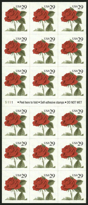 Red Rose Pane of 18 - 29 Cent Postage Stamps 2490a