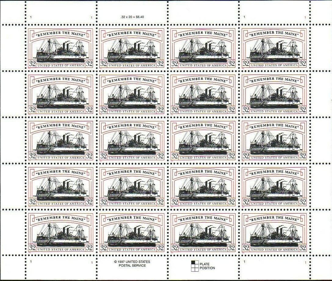 Remember the Maine Sheet of Twenty 32 Cent Postage Stamps Scott 3192