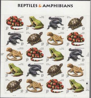 Reptiles & Amphibians Sheet of Twenty 37 Cents Postage Stamps Scott 3814-18