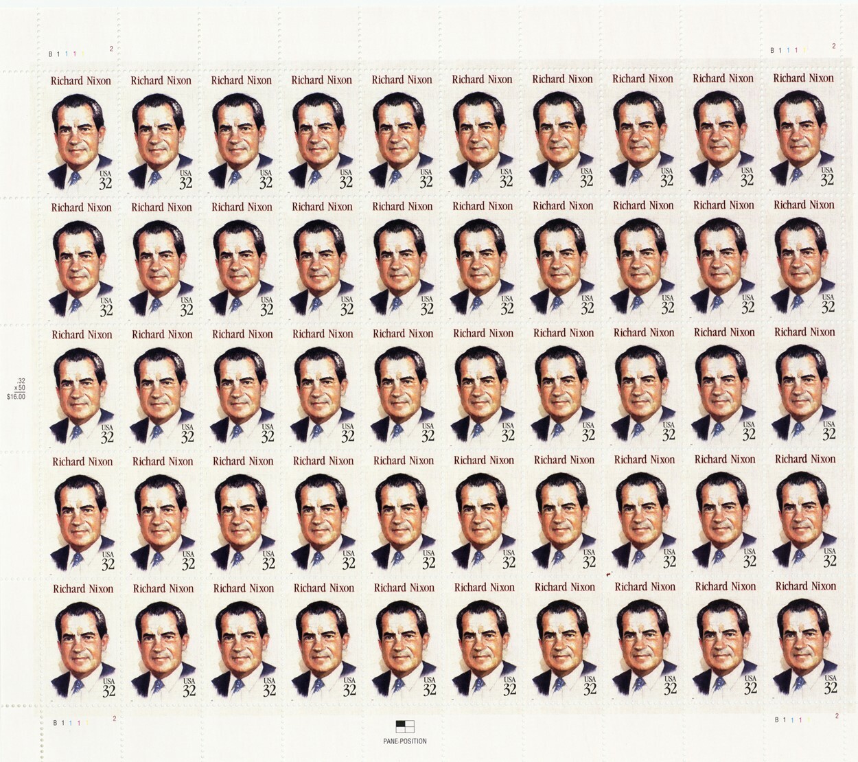 Richard M. Nixon President Sheet of Fifty 32 Cent Stamps Scott 2955